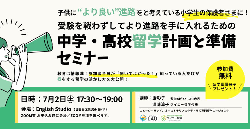 ニュージーランドとオーストラリアの中学・高校留学専門の留学エージェントがお届けするセミナーのご案内です。